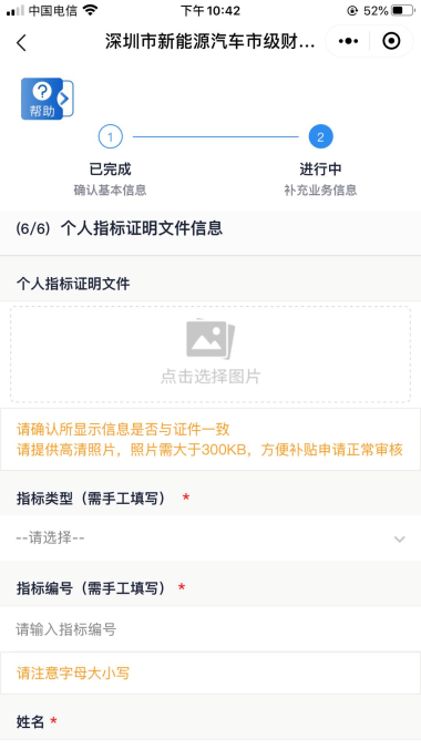 客戶須通過平臺上傳個人指標證明文件,并手工填寫指標類型、指標編號等信息后,即完成申報信息填報。