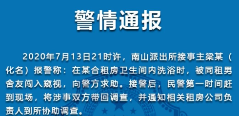 10、7月16日,南山警方發(fā)布對(duì)“女生合租房衛(wèi)生間洗浴被同租男舍友闖入”事件的警情通報(bào),違法行為人陳某亮(男,31歲)行為已構(gòu)成侵犯他人隱私,南山警方已依法對(duì)陳某亮作出行政拘留5日的處罰決定。