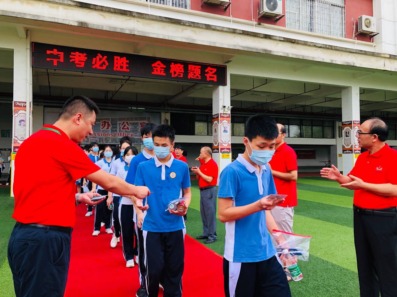龍崗六約學(xué)校全體行政人員與九年級(jí)老師,穿著紅色送考服送考,寓意“鴻運(yùn)當(dāng)頭”。九年級(jí)學(xué)生走過龍門,踏上紅地毯,自帶炫酷出場(chǎng)bgm。(記者李麗、周紅聲)