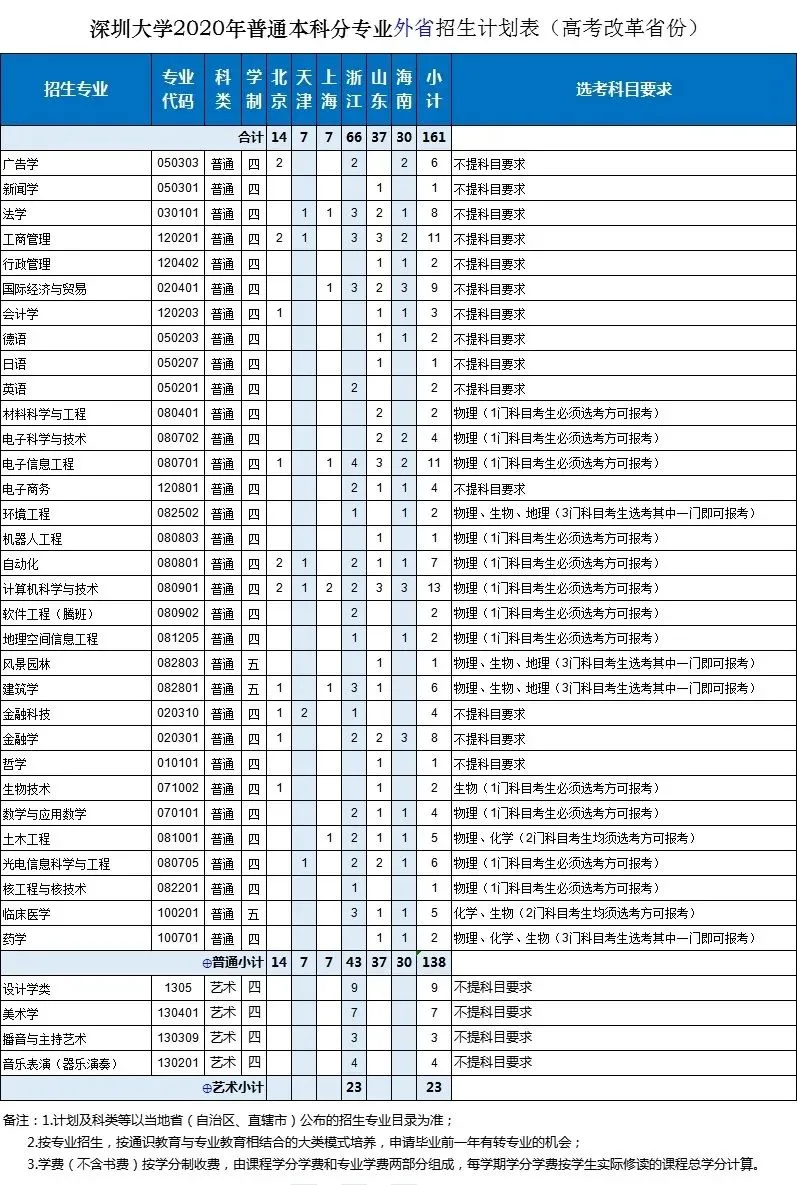 深圳大學(xué)2020年面向全國29個?。ㄗ灾螀^(qū)、直轄市)招生,招生總規(guī)模保持不變,總計劃為6750人。增加天津這1個招生省份;增加廣東省外招生計劃;增加金融科技、機器人工程、學(xué)前教育(師范)3個招生專業(yè);增加軟件工程(騰班)、心理學(xué)(師范)2個專業(yè)方向。