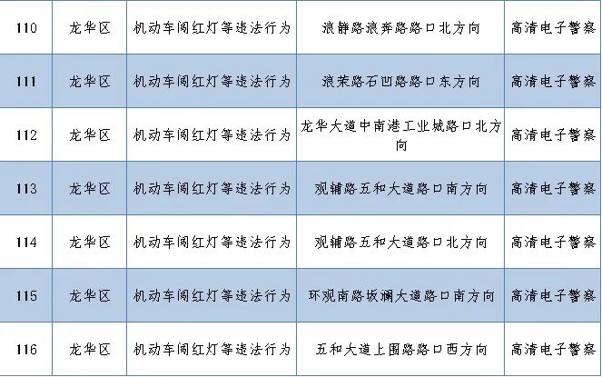 新增116套電子警察監(jiān)控設(shè)備,用于查處闖紅燈、逆行、進(jìn)入導(dǎo)向車道變更車道等違法行為,分布在車流量較大的信號路口及路段。