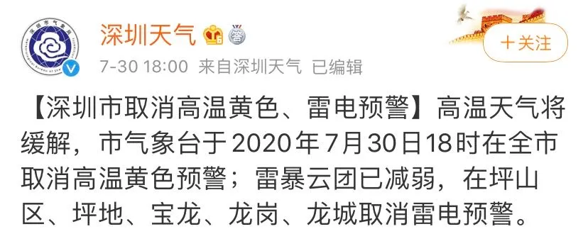 見圳客戶端·深圳新聞網(wǎng)2020年7月31日訊 7月30日18:00,深圳氣象臺(tái)取消了持續(xù)生效25天的高溫預(yù)警。
