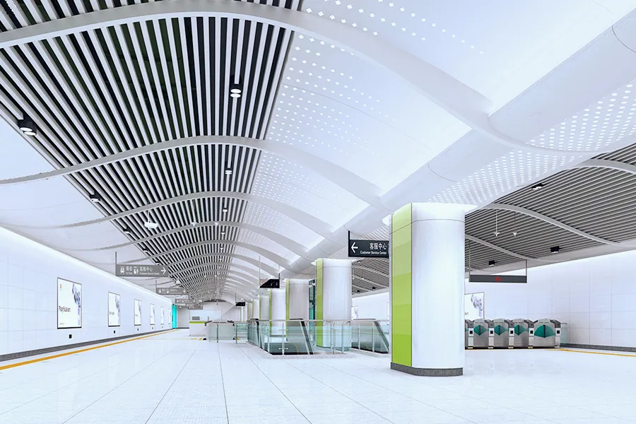 通新嶺站位于福田區(qū)上步路與紅荔路交叉口南側(cè)上步路上,呈南北向布置。車站為地下三層單柱雙跨結(jié)構(gòu),共設(shè)出入口3個(gè):A、E、F。此外,與3號線通道換乘。