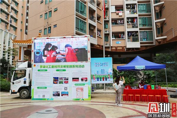 在漁民村文化廣場(chǎng),垃圾分類宣傳車(chē)上的LED屏幕播放著垃圾分類減量宣傳視頻,供社區(qū)居民觀看學(xué)習(xí),據(jù)悉,這是全市首輛垃圾分類宣傳大篷車(chē)。而此輛垃圾分類宣傳車(chē)從漁民村發(fā)車(chē)也有著重要意義,上世紀(jì)70年代,漁民村趁著改革開(kāi)放的春風(fēng),發(fā)掘地域的優(yōu)勢(shì),做出了改革的第一步嘗試,經(jīng)過(guò)四十多年的發(fā)展,漁民村不僅夯實(shí)了物質(zhì)基礎(chǔ),更是在精神文明層面上有了長(zhǎng)足的發(fā)展,如今漁民村也成立了自己的志愿服務(wù)組織—深圳市羅湖區(qū)民樂(lè)志愿者協(xié)會(huì)。
