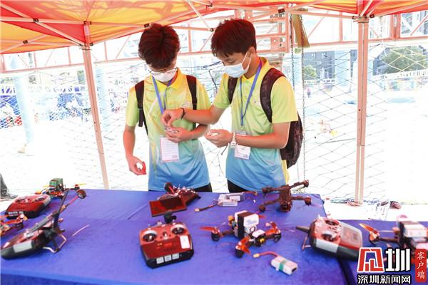 在2019年首屆活動基礎(chǔ)上,本屆賽事堅(jiān)持學(xué)生全身心發(fā)展理念,以學(xué)生“所見、所感、所思、所想、所用”設(shè)5大比賽項(xiàng)目:無人機(jī)短片拍攝賽,25支隊(duì)伍以“我的學(xué)?!睘橹黝},使用無人機(jī)將自己所見的學(xué)校校風(fēng)校貌拍攝下來,制作成短視頻作品并解說,宣傳推廣學(xué)??萍汲晒粺o人機(jī)任務(wù)挑戰(zhàn)賽,設(shè)FPV競速賽和一目視競速賽,有23支隊(duì)伍參賽,每支隊(duì)伍5名選手,合力對無人機(jī)進(jìn)行改裝完成比賽,由操控選手通過第一視角顯示屏或眼鏡,直接感受無人機(jī)攜帶載重盒極速飛行的情況,完成各項(xiàng)任務(wù);“逐夢大灣區(qū)”無人機(jī)程序任務(wù)賽,24支隊(duì)伍參加,每支隊(duì)伍都要認(rèn)真思考、充分考慮,通過程序設(shè)計(jì)合理飛行線路,確保無人機(jī)按照指令順利飛達(dá)目的地;無人機(jī)科創(chuàng)嘉年華競賽,96支隊(duì)伍,是最多選手參加的比賽,他們充分發(fā)揮想象力,通過繪畫、制作實(shí)物等形式,將心中的無人機(jī)和粵港澳大灣區(qū)表現(xiàn)出來;無人機(jī)智能物聯(lián)賽,20支隊(duì)伍的選手正熟練地使用無人機(jī)完成物聯(lián)任務(wù),將無人機(jī)真正融入到生活中。