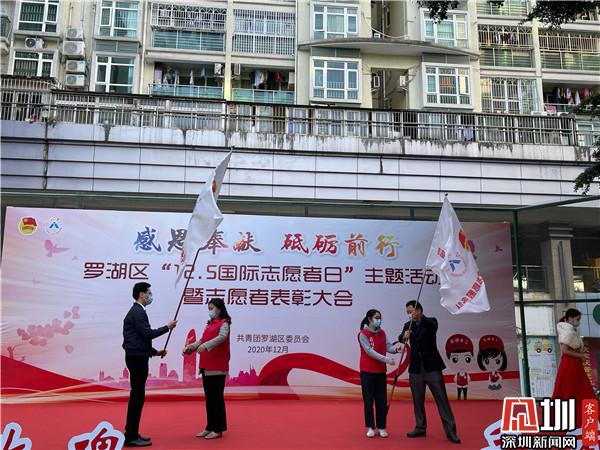 現(xiàn)場,活動向抗擊新冠肺炎疫情志愿服務先進集體和先進個人、文明城市創(chuàng)建志愿服務優(yōu)秀組織和優(yōu)秀個人進行榮譽表彰,授予29個志愿服務組織、113名志愿者榮譽稱號。同時,為新成立的羅湖區(qū)國防教育志愿服務隊、羅湖區(qū)漁邨社區(qū)文明實踐志愿服務隊兩支隊伍舉行授旗儀式。據(jù)悉,新的志愿服務隊將在青少年思想教育、文明城市創(chuàng)建、社區(qū)綜合治理等領域發(fā)揮專業(yè)志愿力量,進一步推動羅湖區(qū)志愿服務從提供社會服務向參與社會治理、凝聚社會共識轉變,為羅湖各項事業(yè)的發(fā)展做出應有的貢獻。