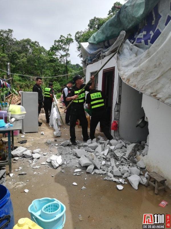 2019年5月22日,市生態(tài)環(huán)境局羅湖管理局、區(qū)規(guī)劃土地監(jiān)察局和東湖街道辦,聯(lián)合區(qū)水務(wù)局共60余名執(zhí)法人員到場進行強制清理。為阻撓執(zhí)法,當(dāng)事人糾集了一幫無關(guān)人員現(xiàn)場阻撓,不斷通過言語攻擊執(zhí)法人員,給聯(lián)合執(zhí)法人員帶來巨大阻力。執(zhí)法人員克服困難,按照既定部署立即啟動應(yīng)急方案,經(jīng)過緊張有序的清理整治行動,將現(xiàn)場亂搭建清理完畢,及時消除水源保護區(qū)內(nèi)的污染源。