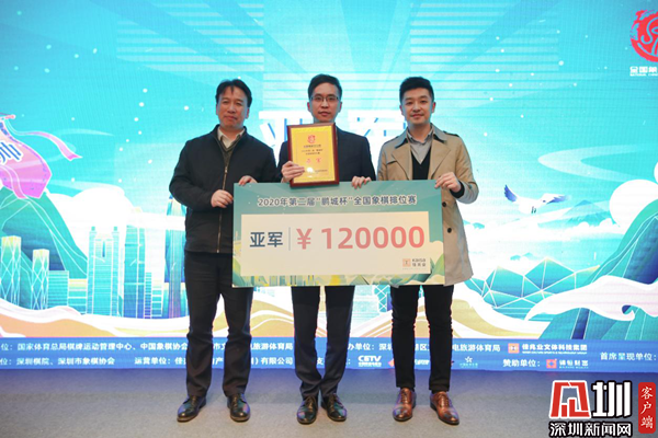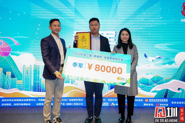 12月31日下午,由佳兆業(yè)呈現(xiàn)的第二屆“鵬城杯”全國(guó)象棋排位賽在深圳市羅湖區(qū)陽光酒店舉行頒獎(jiǎng)儀式。王天一獲得冠軍以及30萬元的獎(jiǎng)金,趙鑫鑫、孟辰分別獲得了亞軍、季軍。
