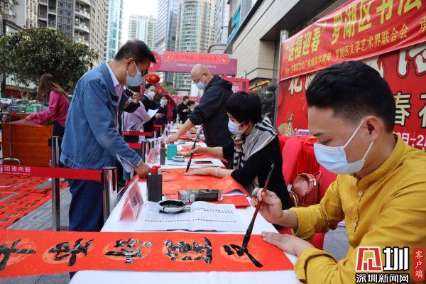 見圳客戶端·深圳新聞網(wǎng)2月3日訊(記者 劉晨)由羅湖區(qū)文化廣電旅游體育局、羅湖區(qū)文學藝術界聯(lián)合會主辦,羅湖區(qū)書法家協(xié)會承辦,國速地產(chǎn)協(xié)辦的“送福迎春”——羅湖區(qū)書法家書贈春聯(lián)活動2月1日在羅湖區(qū)寶安南路國速大廈南廣場舉行。