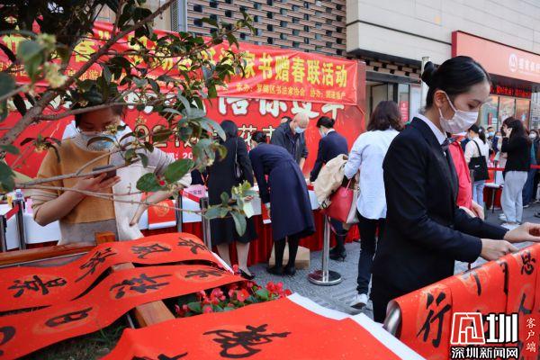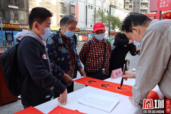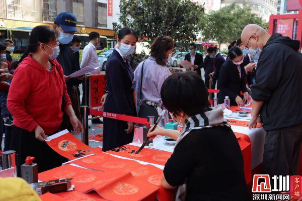 據(jù)悉,羅湖區(qū)書法家協(xié)會于2021年春節(jié)前夕組織一批優(yōu)秀書法家深入社區(qū)基層,現(xiàn)場為群眾書贈春聯(lián),書贈福字,目前活動先后在羅湖美術館南廣場、漁民村、羅湖區(qū)委等地舉辦多場。羅湖區(qū)書法家書贈春聯(lián)活動已連續(xù)舉辦了22年,深受群眾喜愛,成為羅湖的一項品牌活動。