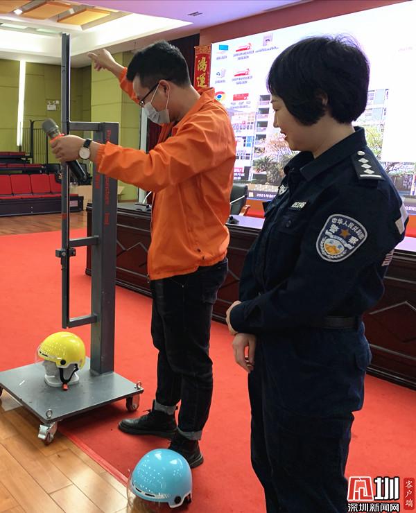 針對目前頭盔佩戴率的問題,羅湖交警充分調(diào)動(dòng)社會資源,聯(lián)合深圳曉安頭盔公司,現(xiàn)場講解頭盔在事故中對頭部的保護(hù)作用,為同學(xué)們演示在重力撞擊的情況下,有頭盔保護(hù)和沒頭盔保護(hù)的不同結(jié)果,讓現(xiàn)場同學(xué)們親身感受到頭盔的重要意義,還免費(fèi)向同學(xué)們贈送頭盔。