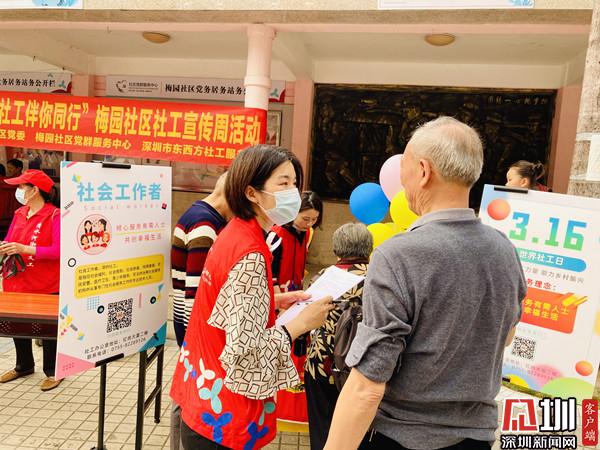 3月16日下午,深圳市清水河街道梅園社區(qū)黨委、深圳市東西方社工服務(wù)社駐梅園社區(qū)黨群服務(wù)中心的社工開展了“幸福梅園 社工伴你同行”社工宣傳周活動。