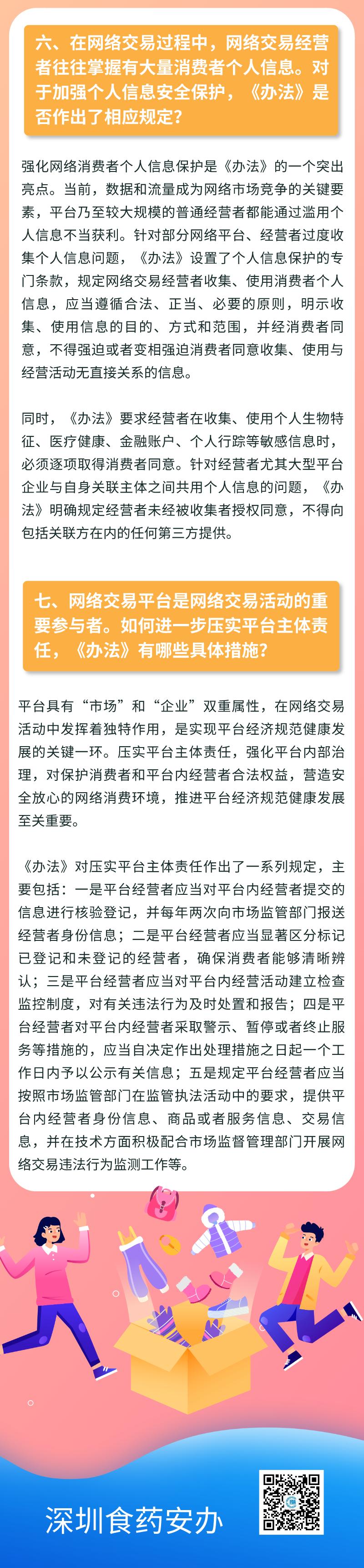 《辦法》明確了網(wǎng)絡(luò)交易監(jiān)管堅持鼓勵創(chuàng)新、包容審慎、嚴(yán)守底線、線上線下一體化監(jiān)管原則,提出推動完善多元參與、有效協(xié)同、規(guī)范有序的網(wǎng)絡(luò)交易市場治理體系,對網(wǎng)絡(luò)經(jīng)營主體登記、新業(yè)態(tài)監(jiān)管、平臺經(jīng)營者主體責(zé)任、消費(fèi)者權(quán)益保護(hù)、個人信息保護(hù)等重點(diǎn)問題作出了明確規(guī)定。