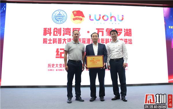 活動中,姚波和戴澤樺代表活動主辦單位向俞大鵬贈送了“科創(chuàng)灣區(qū) ?萬象羅湖|院士大講堂暨深港澳青年科技交流講壇”紀念牌,衷心感謝俞院士在百忙中到羅湖傳授寶貴知識和對羅湖區(qū)科普工作的大力支持。