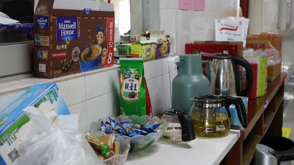 在不大的辦公室,來自各個地區(qū)的疾控人員坐在一起,聚精會神的研究手中的數(shù)據(jù),與同事核對信息準確性,不時有工作人員撥出電話、接到電話,神情專注地聆聽聽筒后的每一個數(shù)據(jù)。在門外,一條長桌上擺滿了各種零食、飲品,一盒潤喉糖已經(jīng)見底,一箱功能飲料也已經(jīng)所剩無幾。