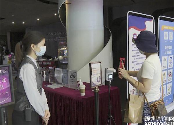 在直播鏡頭的另一邊,記者在羅湖UA影院看到,門(mén)口顯眼位置擺放了疫情防控宣傳板并設(shè)置了測(cè)溫登記臺(tái),還配置了免洗洗手液等防疫物資,前來(lái)觀影的市民需出示綠碼,并進(jìn)行測(cè)溫,方可進(jìn)入影院。此外,影院工作人員的核酸檢測(cè)、疫苗接種數(shù)據(jù)都會(huì)記入臺(tái)賬。