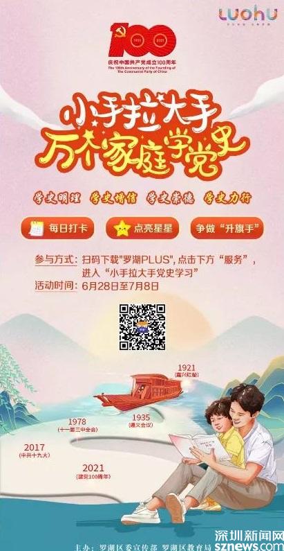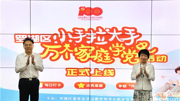 讀特客戶端·深圳新聞網(wǎng)2021年6月28日訊(記者 劉嘉敏 彭桂紅 通訊員 李瑩瑩)“七一”將至,為慶祝中國(guó)共產(chǎn)黨成立100周年,進(jìn)一步推動(dòng)羅湖區(qū)黨史學(xué)習(xí)教育走深走實(shí),羅湖區(qū)委宣傳部聯(lián)合羅湖區(qū)教育局于6月28日在“羅湖Plus”客戶端正式推出“小手拉大手”萬(wàn)個(gè)家庭學(xué)黨史活動(dòng)。當(dāng)天,羅湖區(qū)委常委、宣傳部部長(zhǎng)呂漫妮,羅湖區(qū)副區(qū)長(zhǎng)、二級(jí)巡視員宋強(qiáng)等領(lǐng)導(dǎo)出席啟動(dòng)儀式。
