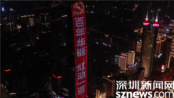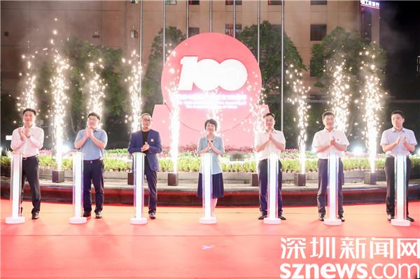 隨著參會領(lǐng)導(dǎo)和嘉賓按下儀式啟動鍵,羅湖地標建筑京基100被“點亮”,滾動顯示“百年華誕 紅動一百”、“崢嶸歲月 百年風(fēng)華”祝福語,噴泉廣場亮如白晝,映入觀眾眼中,現(xiàn)場發(fā)出陣陣贊嘆聲,將慶祝的氛圍推向高潮。