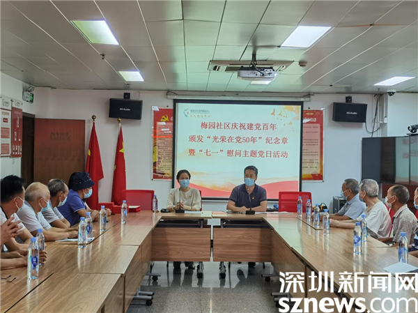 讀特客戶端·深圳新聞網(wǎng)2021年6月30日訊(記者 郭含笑 通訊員 陳秋珊 紀(jì)楚苗)為進(jìn)一步加強(qiáng)和體現(xiàn)黨組織對(duì)黨員的關(guān)心與愛護(hù),在中國(guó)共產(chǎn)黨百年華誕來(lái)臨之際,6月30日下午,深圳市羅湖區(qū)清水河街道梅園社區(qū)黨委在黨群服務(wù)中心二樓會(huì)議室舉行慶祝建黨百年頒發(fā)“光榮在黨50年”紀(jì)念章暨“七一”慰問主題黨日活動(dòng)。