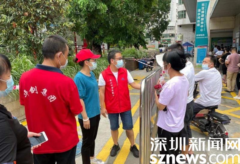 據(jù)了解,在本次疫情防控期間,羅湖區(qū)委下沉干部主要負(fù)責(zé)坭崗社區(qū)合圍各個(gè)卡口,他們每天忙于測溫、查驗(yàn)行程軌跡、查驗(yàn)健康碼、出入車輛管理、回應(yīng)居民咨詢,為坭崗社區(qū)筑造一條堅(jiān)實(shí)的防線。除此之外,來自深圳報(bào)業(yè)集團(tuán)的工作隊(duì)也堅(jiān)守在清水河街道社康。他們通過耐心地指引居民截取行程碼、健康碼,來維護(hù)現(xiàn)場秩序,引導(dǎo)居民接種疫苗。從早上7點(diǎn)到晚上10點(diǎn),甚至是12點(diǎn),他們都和社區(qū)工作者一樣,堅(jiān)守在疫情防控的第一道防線,為社區(qū)疫苗接種推進(jìn)工作提供了極大的幫助。這些下沉干部和工作隊(duì)也得到社康工作人員和周邊居民的點(diǎn)贊,清水河街道社康主任感嘆說:“下沉干部和工作隊(duì)的帥哥們真是給力??!”