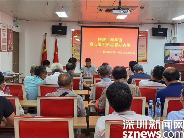 清水河街道四級調(diào)研員、梅園社區(qū)第一書記黃大滿為全體黨員講授黨史學(xué)習(xí)教育專題黨課,黨課和表彰會(huì)由梅園社區(qū)黨委副書記陳秋珊主持,社區(qū)兩委班子成員以及下轄25個(gè)黨支部書記參加。