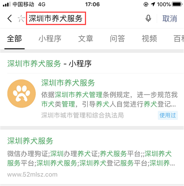 溫馨提示:尚未辦理養(yǎng)犬登記的市民朋友,可以登錄“廣東政務服務網(wǎng)”或通過微信搜索“深圳市養(yǎng)犬服務”小程序,足不出戶便可在線辦理養(yǎng)犬初始登記。養(yǎng)犬服務平臺可根據(jù)實際需求申請辦理初始、變更、注銷等登記事項,還可進行芯片預約、通過地圖查看養(yǎng)犬服務機構(辦證點、犬傷門診)地址及聯(lián)系電話等。