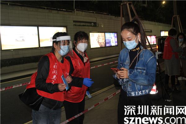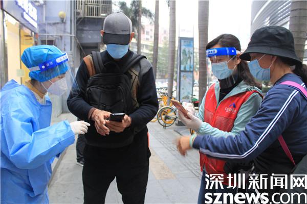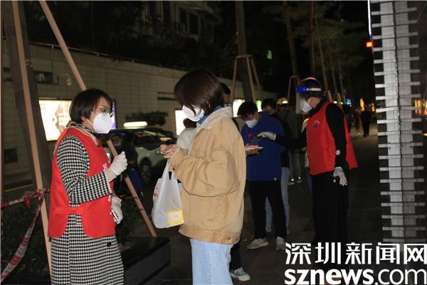 “楊妹,我來(lái)了,還帶來(lái)了一個(gè)人?!?3日晚,正在羅湖區(qū)桂園街道老圍社區(qū)禧程酒店核酸檢測(cè)點(diǎn)忙碌的社工楊女士,接到志愿者溫寶珍的電話(huà)。溫寶珍從“0107疫情”開(kāi)始以來(lái),每天都在核酸檢測(cè)點(diǎn)協(xié)助核酸檢測(cè),這晚她把自己的兒媳婦吳永霞也帶來(lái)了?!捌牌艅倧钠渌鐓^(qū)的核酸檢測(cè)點(diǎn)做完義工回來(lái),聽(tīng)說(shuō)老圍社區(qū)需要人,放下飯碗就來(lái)了。婆婆這么大年紀(jì)了還沖在前面,我做兒媳婦的,怎么也要向婆婆學(xué)習(xí)啊?!眳怯老紝?duì)社工說(shuō)?!皯?yīng)該的應(yīng)該的,疫情當(dāng)前,每個(gè)人都有義務(wù)出來(lái)與病毒作戰(zhàn),光是靠社區(qū)工作者不行,他們太累了?!睖貙氄溥呎f(shuō)邊幫兒媳穿好義工服,把粵核酸的二維碼交給兒媳,并教兒媳如何在手機(jī)上查驗(yàn)。