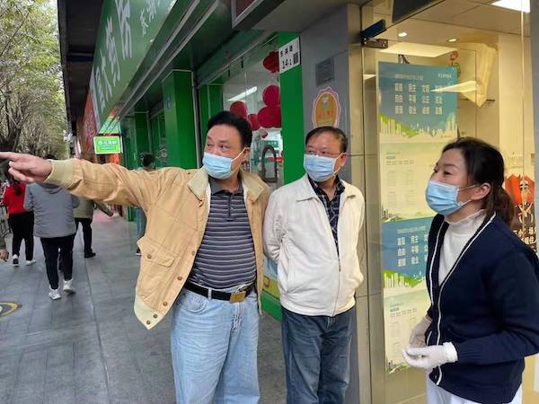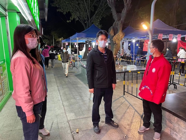 隨后,文促會一行來到了東湖街道大望社區(qū)。在社區(qū)核酸檢測現場,大望社區(qū)黨委書記高桂秀正在指揮現場工作;大望實業(yè)公司董事長何雨聰和大望社區(qū)副書記李雪康兩人都面帶倦容,明顯近期睡眠嚴重不足。據了解,高桂秀近期一直綁著護腰墊片,帶病堅持抗疫。