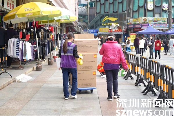 據(jù)悉,在市、區(qū)指揮部領(lǐng)導(dǎo)下,東門街道成立了專項(xiàng)疫情防控指揮部,設(shè)置11個(gè)工作組。全街道共設(shè)置了8個(gè)臨時(shí)核酸檢測點(diǎn)和2個(gè)防控區(qū)內(nèi)人員核酸檢測點(diǎn),開展全員核酸檢測工作。在核酸檢測點(diǎn),檢測通道分為綠碼與黃碼通道,現(xiàn)場工作有序開展,居民自覺遵守規(guī)定,間隔一米排隊(duì)。羅湖醫(yī)院集團(tuán)工作人員,正在運(yùn)送補(bǔ)給物資。