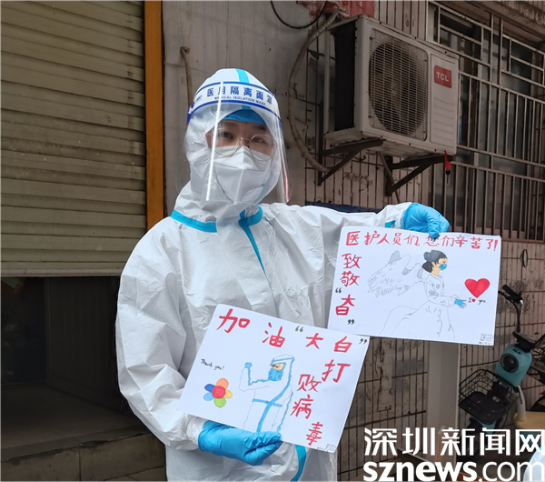 拿起小喇叭,化身段子手;遇到問題,化身解決問題小能手。在黃貝嶺社區(qū)新設(shè)的一個核酸采樣點,帳篷暫時還沒有到位,正午太陽直射,手機反光厲害,掃不出碼,就躲在桌子的陰影里掃碼;第二天又刮大風,處在風口的帳篷幾乎被吹飛,他們和居民一起徒手拉住帳篷,守護“陣地”。
