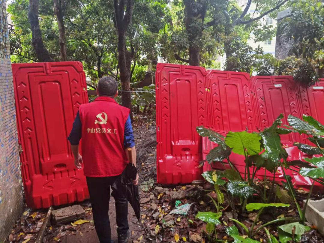 △ 關(guān)工委委員趙為兵、賴碧梅帶頭參與疫情防控工作,動(dòng)員轄區(qū)物業(yè)、熱心居民共同參與抗疫志愿服務(wù)