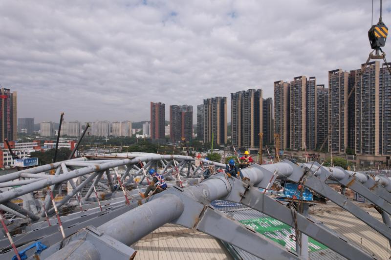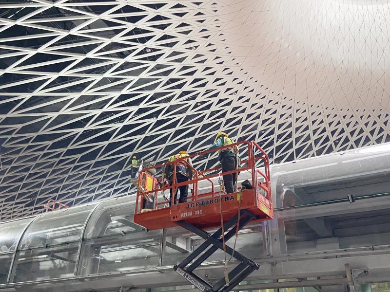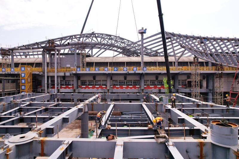 崗廈北樞紐軌行區(qū)玻璃罩棚安裝。