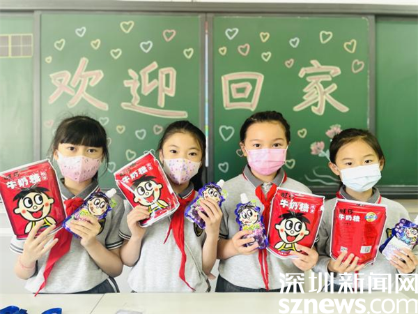 三年級各班更是個性十足,旺仔、禮物袋、可吸果凍一應(yīng)俱全,孩子期盼的心被滿滿的愛充斥著。“學(xué)校就是我的家!”