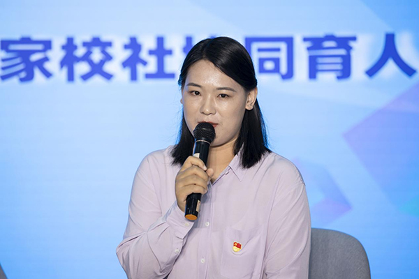 社區(qū)代表大望社區(qū)黨委書記高桂秀向大家分享了她致力于“家校社協(xié)同育人”的初心以及大望社區(qū)的相關(guān)探索,大望社區(qū)孩子及其家庭人數(shù)占社區(qū)的70%以上,且大部分無異于“留守未成年人”和困境未成年人。大望社區(qū)抓住轄區(qū)內(nèi)家庭教育的痛點(diǎn)與堵點(diǎn),通過貫徹社區(qū)“大黨委”理念、建立定期聯(lián)系的聯(lián)席工作例會(huì)制度、充分利用轄區(qū)優(yōu)勢(shì)資源,成立家長(zhǎng)黨員志愿者服務(wù)隊(duì)等多措并舉,多方聯(lián)動(dòng),形成家庭主體、學(xué)校主導(dǎo)、社區(qū)參與的育人網(wǎng)絡(luò)。以社區(qū)黨委為突破點(diǎn),融合一體,聚合成銜接有效、資源共享、活動(dòng)共商、項(xiàng)目共育、互促共榮的動(dòng)態(tài)雙向互動(dòng)協(xié)同育人共同體,構(gòu)建大望特色的‘家校社’協(xié)同育人的新模式,交出一份人民滿意的答卷。