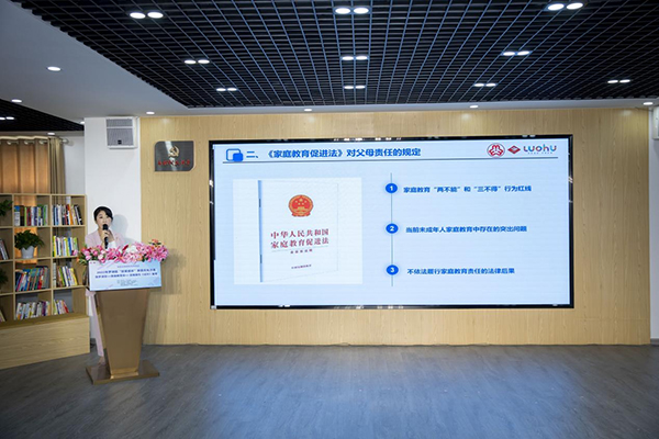 沙龍伊始,羅湖區(qū)人民法院民一庭(家事庭)副庭長(zhǎng)欒媛帶來《〈家庭教育促進(jìn)法〉解讀》的專題講座,闡明《家庭教育促進(jìn)法》的意義,明晰家長(zhǎng)“兩不得”“三不能”的行為紅線,并針對(duì)當(dāng)下大多家庭教育存在生而不養(yǎng)、養(yǎng)而不教等突出問題進(jìn)行剖析,結(jié)合工作歷程中生動(dòng)形象的案例,讓許多家長(zhǎng)明確了法律的要求。同時(shí),欒法官也為家長(zhǎng)們提出了實(shí)用科學(xué)的家庭教育內(nèi)容和方法,也對(duì)家校社協(xié)同育人機(jī)制發(fā)表了自己的想法。