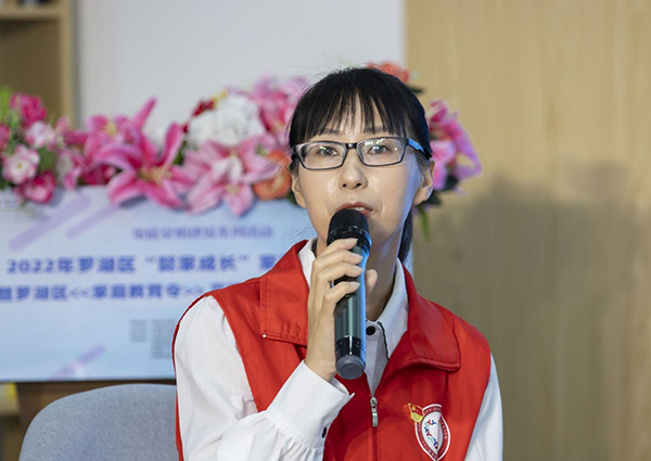 市婦聯(lián)黨組成員、副主席黃毓瓊發(fā)表講話,她表示:今天作為一名家長(zhǎng),自己也深受感動(dòng)。羅湖一直有著創(chuàng)新的傳統(tǒng),各部門工作扎實(shí),主動(dòng)作為,共同為未成年人的成長(zhǎng)貢獻(xiàn)力量。大望社區(qū)是一個(gè)典型的城中村社區(qū),針對(duì)城市里的留守兒童,社區(qū)積極推動(dòng)家長(zhǎng)的成長(zhǎng),結(jié)合各界力量,實(shí)現(xiàn)特色家校社協(xié)同育人體系。同時(shí),期待《家庭教育令》實(shí)施指引(試行)在社區(qū)得到有效的利用,進(jìn)一步探索落實(shí)《家庭教育促進(jìn)法》。有大家在,有制度在,我們羅湖區(qū)的家長(zhǎng)一定能成長(zhǎng)的更快,家庭教育制度一定會(huì)發(fā)展的更好,我們羅湖區(qū)的孩子一定會(huì)更加幸福!