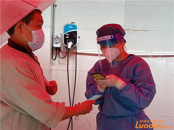 近期,深圳風雨交加,老圍社區(qū)核酸檢測點秩序井然,居民排隊等候檢測,三組通道通行順暢。何芬穿上藍色防護服,戴著口罩面屏,手持手機,按照十人一組的規(guī)律,快速有效地掃碼,掃完優(yōu)雅地做出手勢,指示檢測人員走入正確通道,并及時阻止試圖串道的個別人。有她的高效掃碼,大大減少了居民排隊等候的時間。大雨從上午下到晚上,帳篷縫隙處不斷有雨滴落下來,打在頭上身上,但是何芬全神貫注,根本注意不到,等到21點下班,才發(fā)現(xiàn)防護服都濕了。