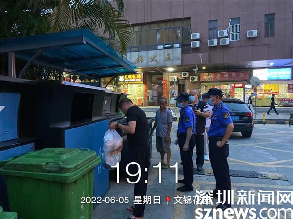 當(dāng)天晚上19點(diǎn)-21點(diǎn),小區(qū)黨員和義工在文錦花園、海富花園垃圾分類投放點(diǎn)與小區(qū)垃圾分類督導(dǎo)員共同開展垃圾分類夜間督導(dǎo)活動(dòng),引導(dǎo)居民分類投放垃圾,并為居民詳細(xì)講解和宣傳廚余垃圾分類的相關(guān)知識。同時(shí)聯(lián)同街道執(zhí)法隊(duì)開展“夜間執(zhí)法”,對所檢查的小區(qū)廚余垃圾分出量較低的物業(yè)小區(qū)開展執(zhí)法檢查,一方面指導(dǎo)垃圾分類督導(dǎo)員切實(shí)履職,另一方面對于亂投放垃圾的行為,對其責(zé)令改正。
