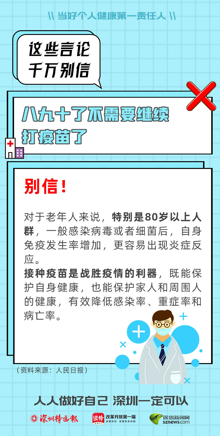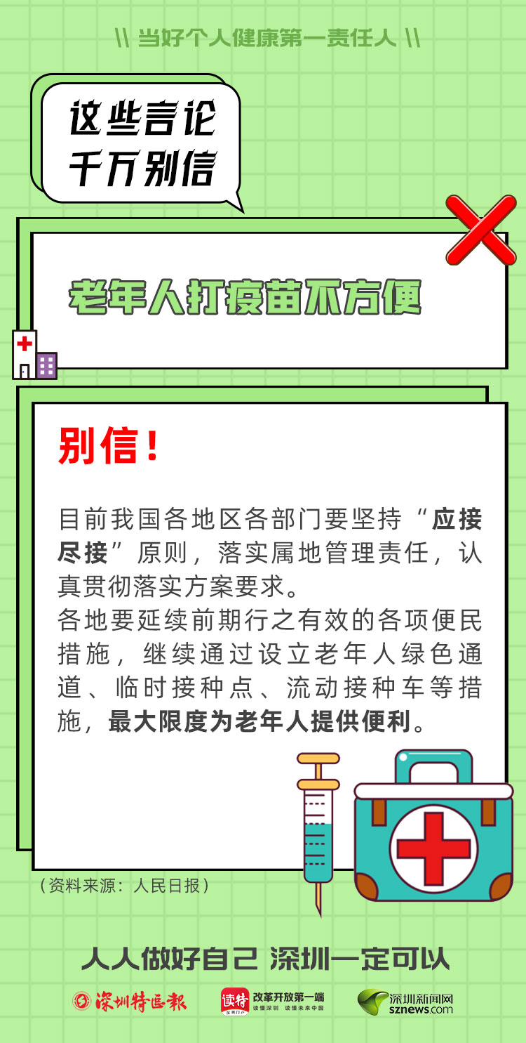 當(dāng)然,還有很多老人認(rèn)為自己身體虛弱,猶豫該不該打疫苗。其實(shí),這事兒要讓科學(xué)來(lái)決定。就近前往疫苗接種點(diǎn),醫(yī)生一定會(huì)本著負(fù)責(zé)態(tài)度,考察您的身體狀況,給您是否接種疫苗提供最靠譜的參考意見(jiàn)。事實(shí)上,這幾年,海量的接種數(shù)據(jù)也表明,接種疫苗不良反應(yīng)率極低,而且大多表現(xiàn)輕微。相信科學(xué),相信專家,準(zhǔn)沒(méi)錯(cuò)。