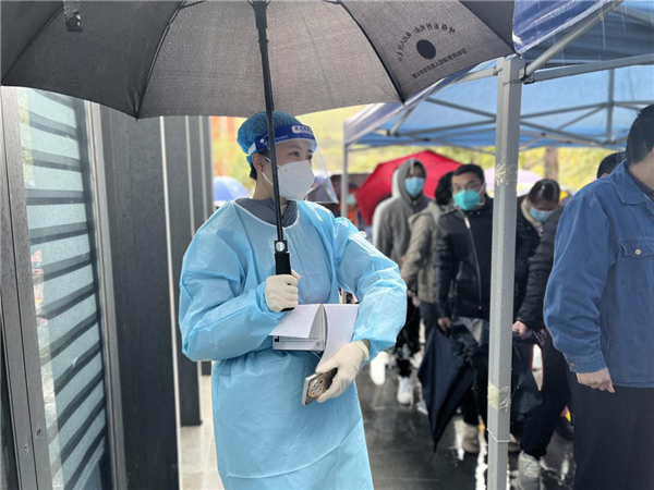 自深圳“0215”疫情突發(fā)以來,羅湖東門街道城東社區(qū)負(fù)責(zé)的湖貝社區(qū)公園臨時核酸點(diǎn)再次啟動。核酸點(diǎn)重啟的那天,雨嘩啦啦的下,負(fù)責(zé)人事安排、后勤保障的盧映均在工作群看到入口處的同事僅穿著雨衣服務(wù)居民的照片,舍不得讓站崗的同事長時間淋雨,恨不得自己去扛帳篷,奈何6個月身孕,只能安排現(xiàn)場的同事挪動帳篷,那帳篷沉得要四位男同志才扛得動。