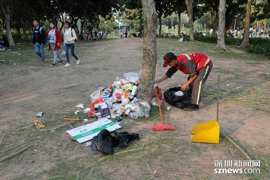 節(jié)假日人流量和車流量的加大,也給深圳灣公園內(nèi)的生態(tài)環(huán)境帶來(lái)了壓力,人流密集的地方,垃圾的產(chǎn)生也相對(duì)較多,在深圳灣公園的草坪上,許多游客遺留的垃圾, 給環(huán)衛(wèi)工人增加了工作量。
