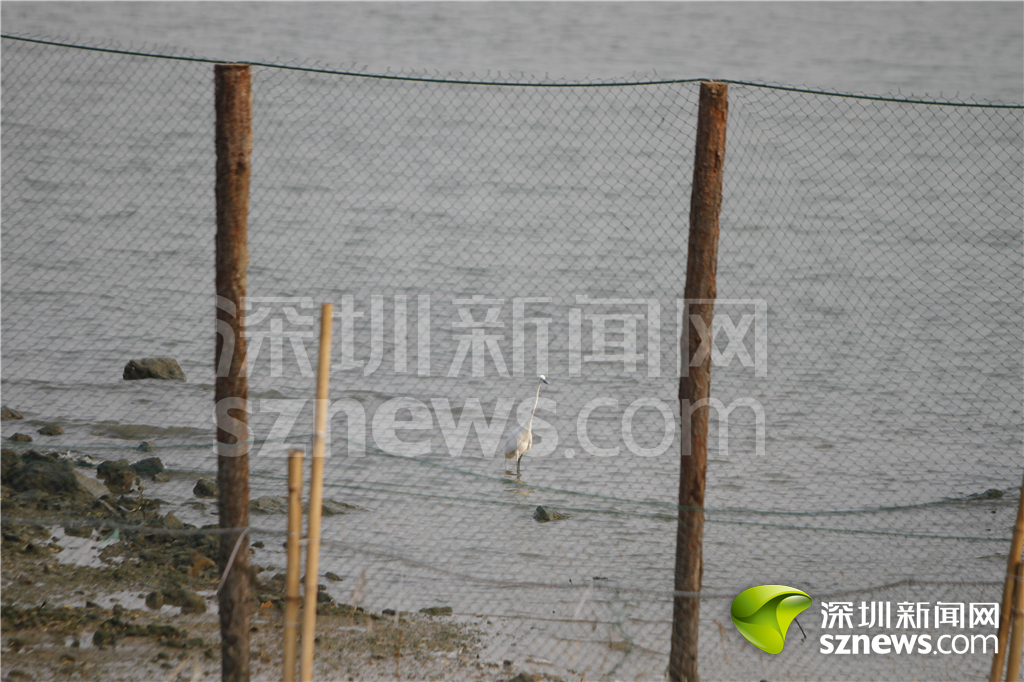 海岸邊的圍網(wǎng),海鳥在網(wǎng)外覓食,網(wǎng)友質(zhì)疑圍網(wǎng)有傷鳥的隱患