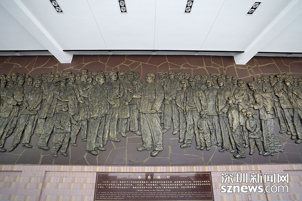 文化長廊中《春到漁村》的銅鑄浮雕再現(xiàn)了1984年鄧小平來漁民村考察的場(chǎng)景