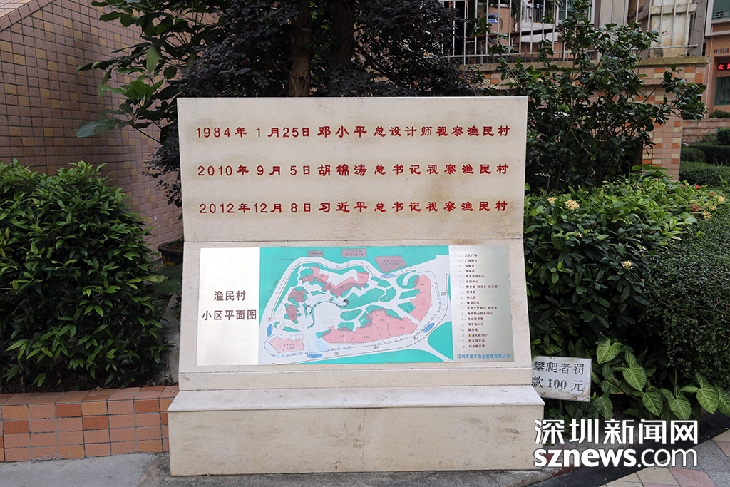 漁民村內(nèi)的一塊石碑上,記錄著鄧小平、胡錦濤、習(xí)近平來漁民村考察的經(jīng)歷