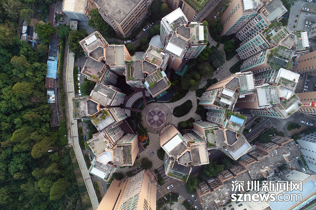 漁民村社區(qū)建筑多為高層小區(qū),社區(qū)中間開(kāi)辟有居民文化廣場(chǎng),從高空俯瞰,整個(gè)社區(qū)宛如一座美麗花園