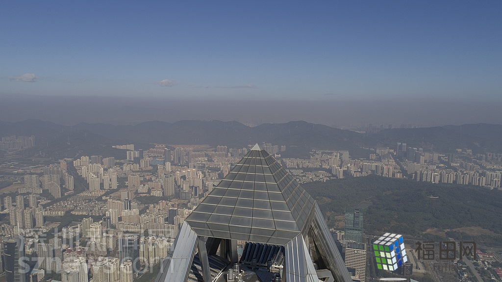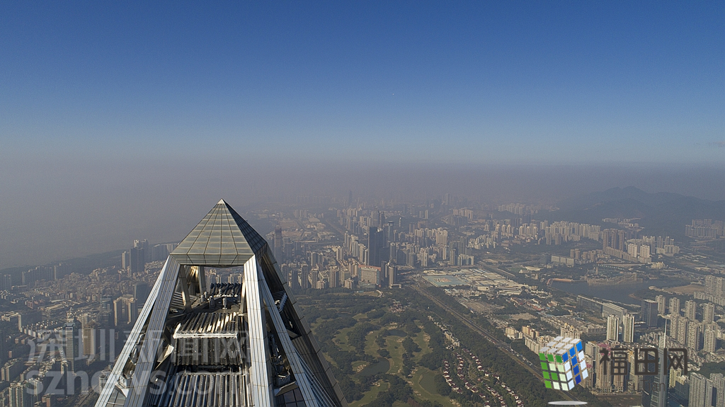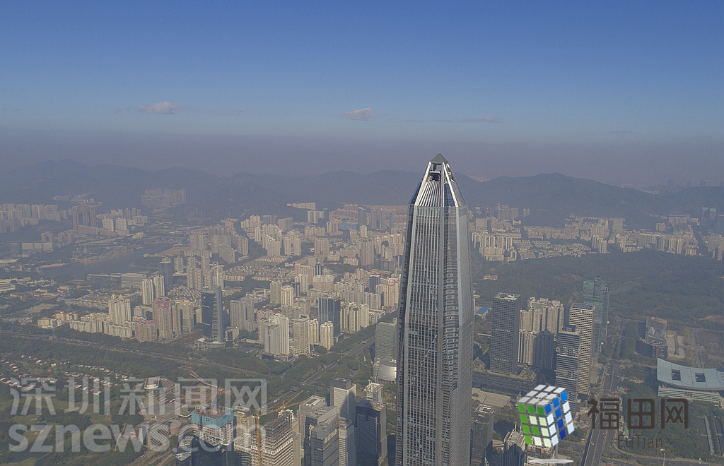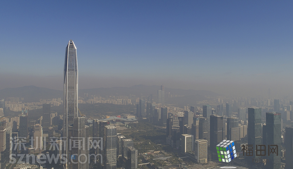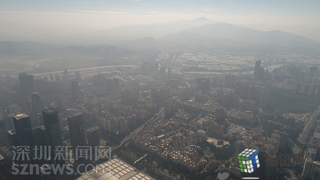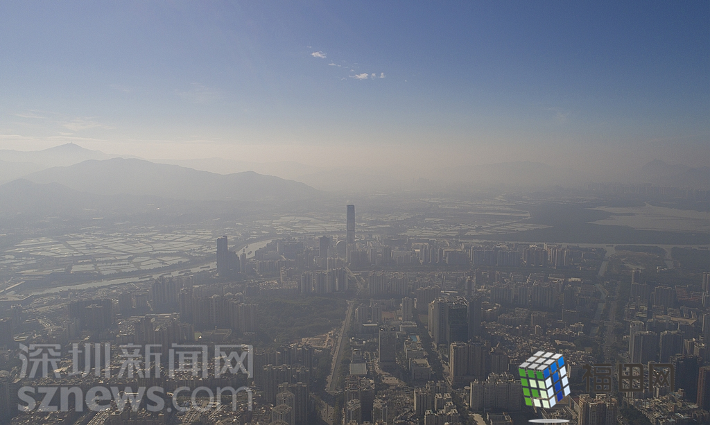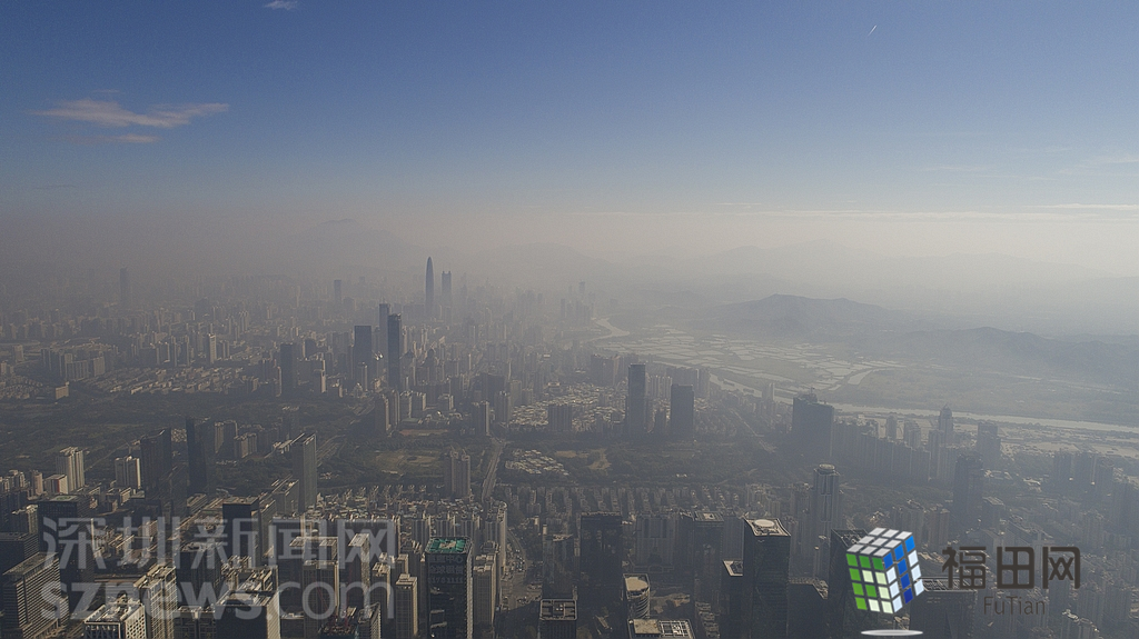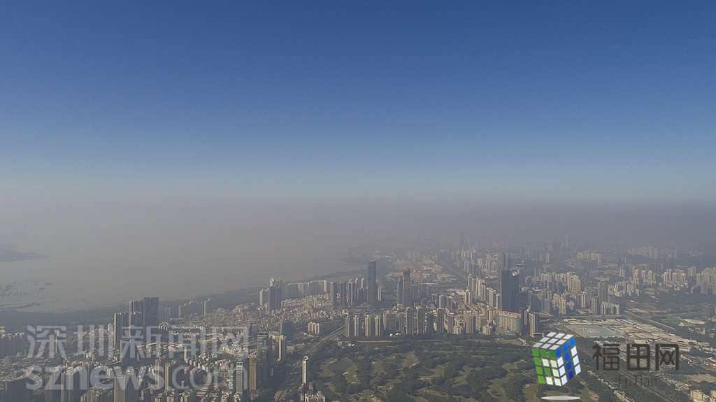 1月18日上午,記者操控?zé)o人機俯瞰深圳中心區(qū)發(fā)現(xiàn),灰霾將天空“割裂”成一道涇渭分明的界線,把城市籠罩得如同一個充滿霧靄的森林。從平安金融大廈的上空遠(yuǎn)眺,西南面的深圳灣在灰霾的籠罩下變成了一片“沙漠”,東面的京基一百幾乎被灰霾“吞沒”,北邊平時肉眼可看的梅林山也因為能見度較低變得若隱若現(xiàn),南面的米埔濕地也被云遮霧繞。