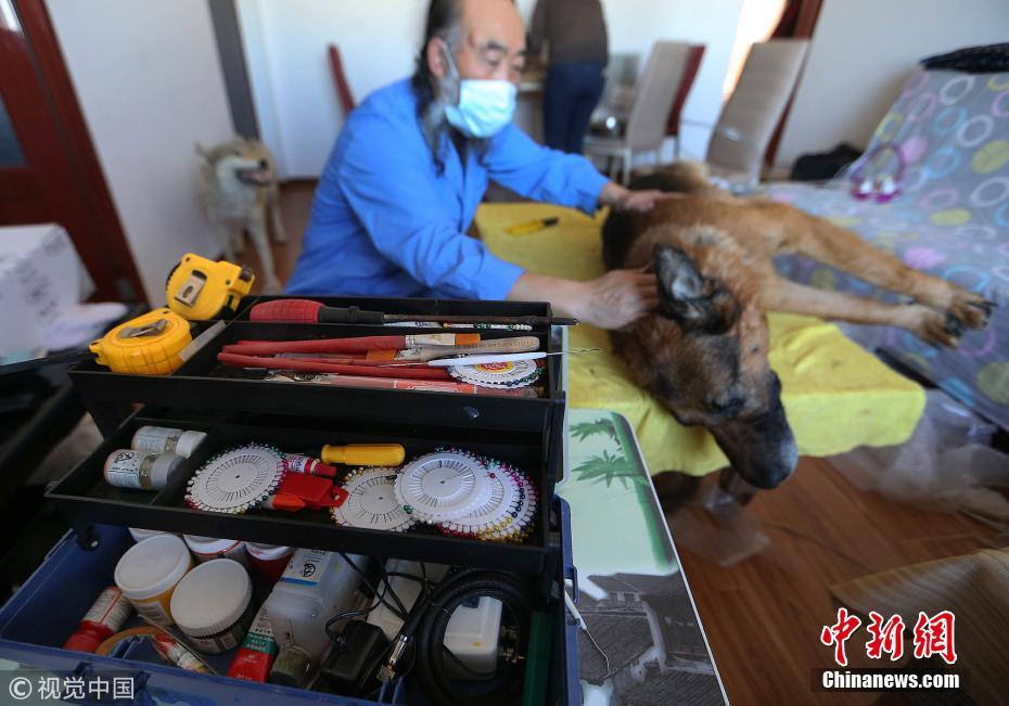 2018年春節(jié)期間,前往北京市朝陽區(qū)高碑店鄉(xiāng)大黃莊社區(qū)甲3號的人絡繹不絕,他們來這里的目的,就是為了讓自己的愛犬“重生”。這家店的主人名叫老郭,是一位動物標本制作師,他對來客常說的一句話就是:“你帶著躺下了的寵物來,我還你一個站起來的它”。圖為郭元虎正在制作狗標本。文字來源:法制晚報 圖片來源:視覺中國