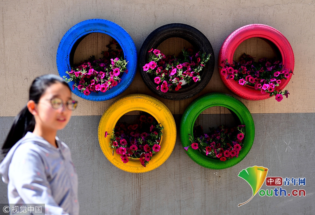 創(chuàng)意輪胎花盆亮相沈陽(yáng) 環(huán)保新奇吸引市民