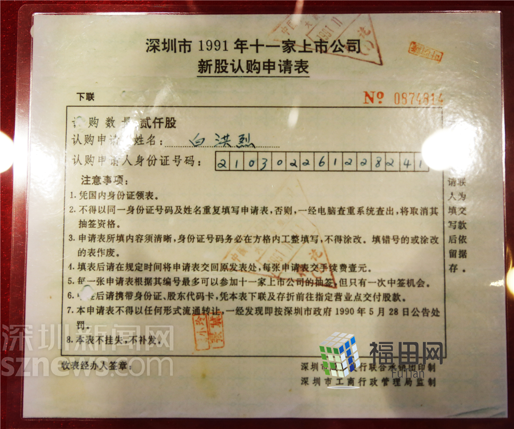 深圳1991年11家上市公司新股認購申請表。