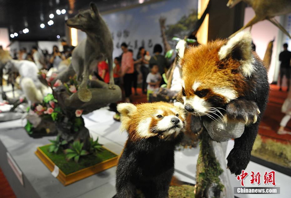 5月27日,各類飛禽走獸活靈活現(xiàn)地出現(xiàn)在民眾的眼前。正在福建博物院展出的第四屆中國(guó)動(dòng)物標(biāo)本大賽的257件惟妙惟肖的標(biāo)本作品集中對(duì)外開放,讓民眾如進(jìn)入“動(dòng)物世界”。本次大賽匯集了全國(guó)標(biāo)本制作企業(yè)、博物館、大專院校、研究所等60多家單位參加,標(biāo)本涵蓋哺乳類、鳥類、爬行類、兩棲類、魚類等動(dòng)物類群的皮張和骨骼標(biāo)本。主辦方希望通過標(biāo)本大賽,向公眾展現(xiàn)動(dòng)物世界的美麗,宣傳生物多樣性和生態(tài)文明,借鑒吸收國(guó)際標(biāo)本制作先進(jìn)經(jīng)驗(yàn),提高中國(guó)野生動(dòng)植物標(biāo)本制作的整體水平。圖為大賽參賽作品小熊貓。中新社記者 張斌 攝